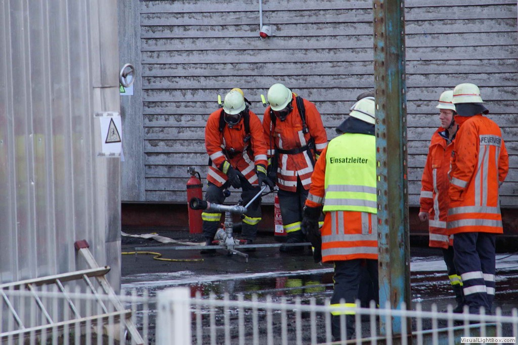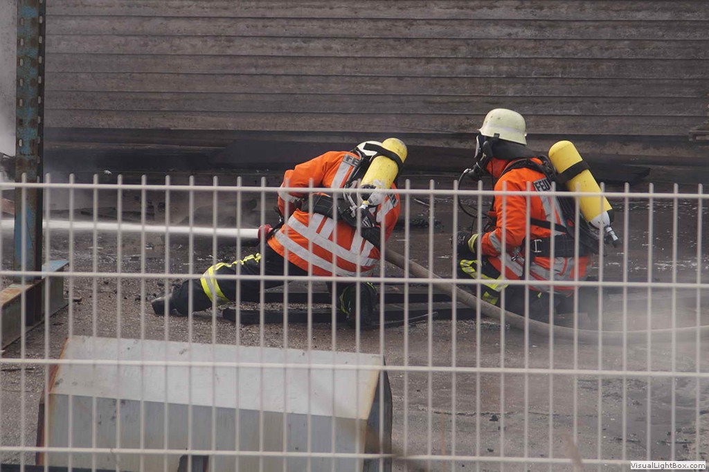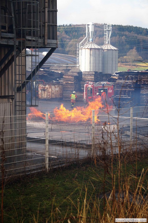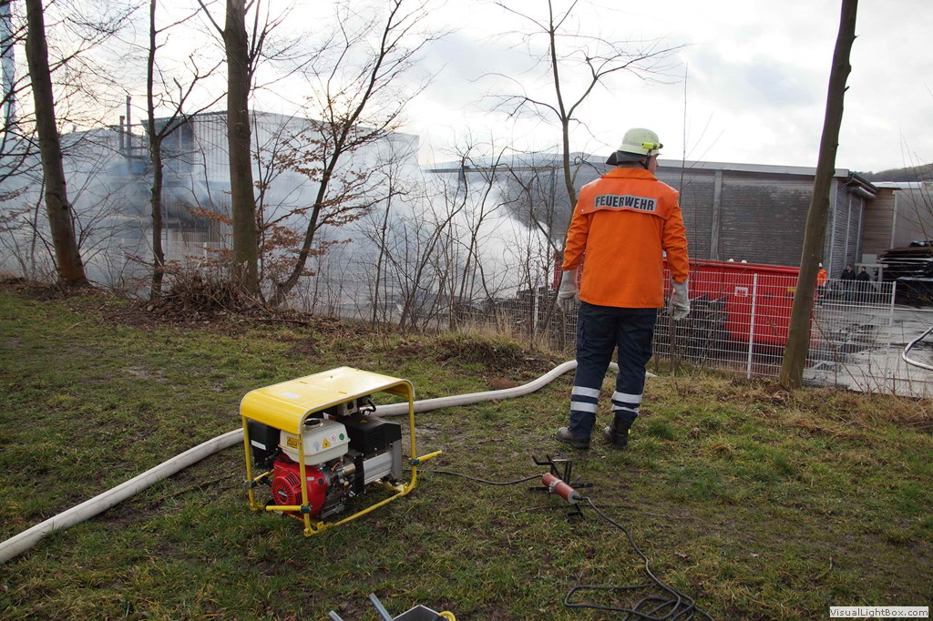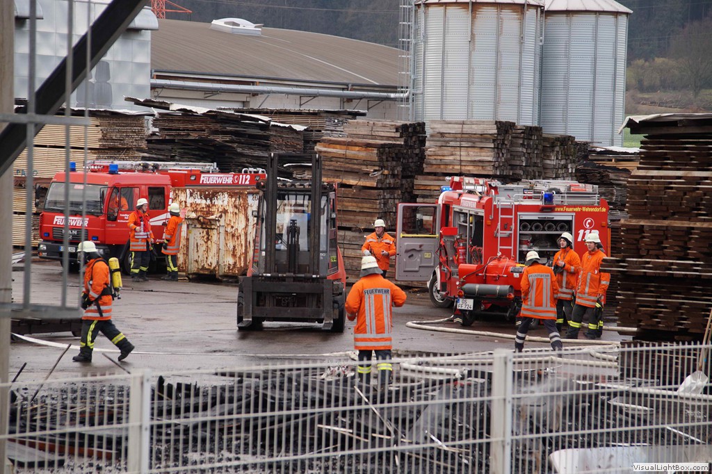 Am Freitag wurde die Ortsfeuerwehr Wehrendorf um 9.54 Uhr zu einer starken Rauchentwicklung auf dem Gelände der Bad Essener Sägewerke GmbH & Co. KG alarmiert. Einsatzleiter Olaf Riefenstein stellte vor Ort fest, dass Holzstapel vor der Thermokammer brannten. Sofort wurde eine Wasserversorgung vom Kanal aus aufgebaut und der Löschangriff vorgenommen. Bei der Entnahme fertig behandelter Holzstapel aus der Thermokammer fingen diese Feuer. Mitarbeiter verschlossen sofort die Kammer und nahmen bis zum Eintreffen der Feuerwehr die Brandbekämpfung vor. Da sich große Mengen an Holz in der Kammer befanden, wurde vor der Öffnung des Tores die Feuerwehralarmeinheit Harpenfeld/Lockhausen gerufen. Mit einer zweiten Pumpe und einer eigenen Leitung wurde eine zusätzliche Wasserversorgung hergestellt. Ein Wasserwerfer wurde vor der Kammer in Stellung gebracht. Atemschutzgeräteträger standen bereit. Nachdem die Kammer geöffnet worden war, konnte schnell Entwarnung gegeben werden. Die sorgfältige Kontrolle ergab, dass an dem verbliebenen Holz kein Brand oder Glutnester zu erkennen waren. So konnten die Feuerwehrkräfte gegen 11.30 Uhr die Einsatzstelle an den Betrieb übergeben. Polizeibeamte aus Bohmte haben die ersten Ermittlungen aufgenommen. Es wurde niemand verletzt. An den technischen Anlagen entstand auch kein Schaden.